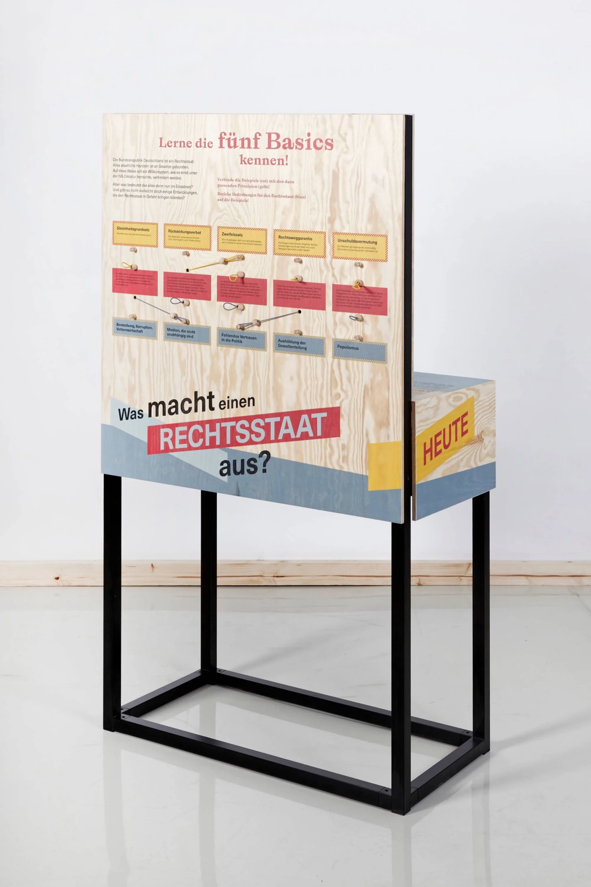 Wo fängt Unrecht an? In acht Station vermittelt die Wanderausstellung demokratische Grundwerte und Rechte. Zielgruppengerecht für Jugendliche aufbereitet, verbindet der Parcours historische Themen mit Gegenwartsfragen – spielerisch, einladend und interaktiv.